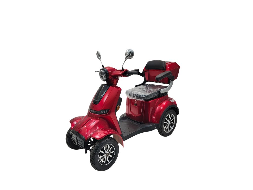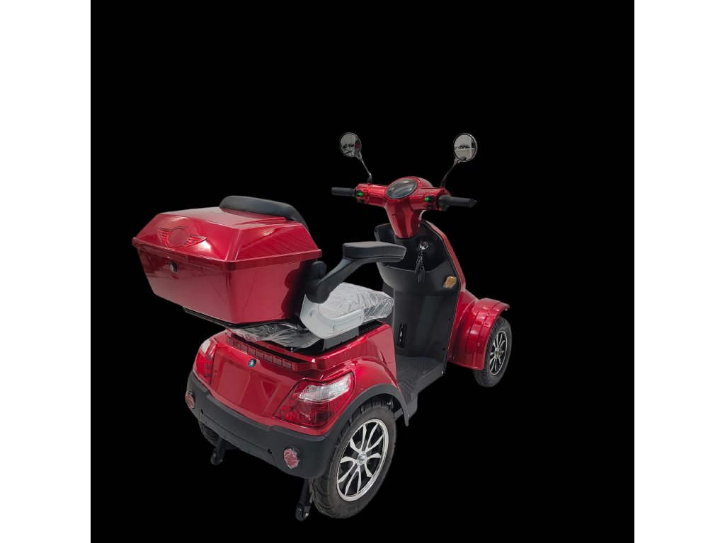 Čtyřkolový elektrický skútr e-FREJ E4 je dopravní prostředek 21. století. V minulosti používané hlučné a nákladné mopedy s chybějícím výkonem nyní střídají elektro skútry. Pokud jde o značku e-FREJ, jsou navíc i stabilní, snadno ovladatelné a tak vhodné mimo jiné i pro méně obratné osoby jako jsou senioři, osoby se zdravotním postižením apod. Ideálně se pro ně hodí k návratu do aktivního života i k dojíždění do práce, na nákup, na procházku se psem atd. Na strojích si však plno zábavy užijí i čistě volnočasoví nadšenci. Čtyřkolky e-FREJ se vždy nabízejí s výjimečným silovým převodem, který hbitě a plynule reaguje na otočení rukojeti s ovladačem výkonu a to i ve velmi kopcovitém terénu nebo při rozjezdu z křižovatky. Pro méně zdatné osoby lze jednoduše snížit maximální rychlost a stroj se tak stává bezpečným i pro ty, kteří se jinak bojí jízdy na jakémkoliv vozidle. Nevadí, že neumíte jezdit na kole, nemusíte držet rovnováhu. Stabilitu zajišťuje široký rozchod kol, nízké těžiště, kvalitní odpružení a pneumatiky. I tak ale bez problému projedete běžnými dveřmi o šířce 80cm. Díky designu připomínajícímu motocykl si budete připadat důstojně a stylově i v provozu. Výbava jako je zamykatelný úložný box a odkládací prostor na drobnosti jistě také přijdou vhod každému uživateli, ať už na nákup nebo výlet.
